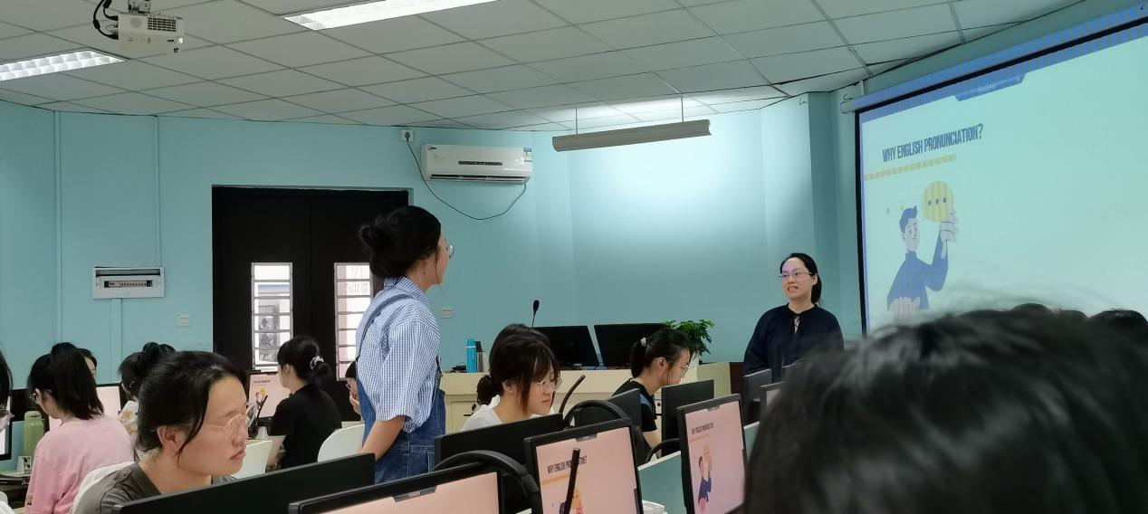 2023年9月27日周三上午,公司英语系杜阿晴老师在讲堂群209开设《英语语音训练》公开课,英语系教师参加了听课及评课活动。