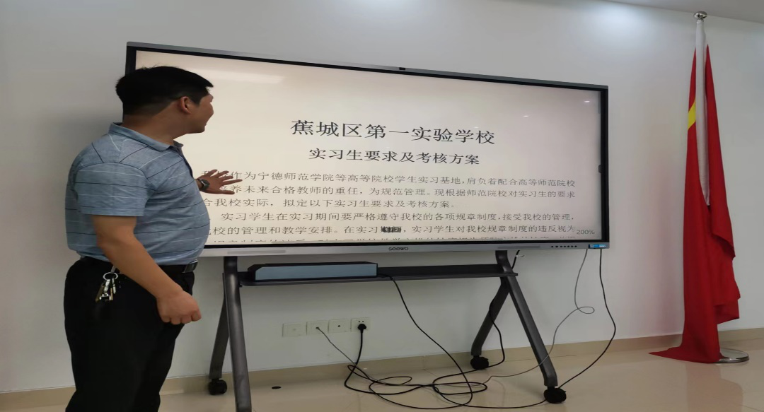 会上,蕉城区第一实验学校的周副董事长首先对实习生的到来表示欢迎。接着,他对实习生提出了三点要求,即团结奋进、高效实习和个人成长。他希望实习生在进行实习实践和锻炼的过程中,能够主动学习、互相团结,合理安排时间进行高效适应和学习,并且及时思考、积累经验,快速提升个人专业和能力方面的成长。周副董事长建议实习生要积极听课,不限于英语学科,灵活安排时间听听语文和数学课,从不同学科教学中学习不同教师的教学设计和授课方式,为今后的就业多做准备。他还强调了个人、员工和教学方面的安全问题。然后,教务处余德帮主任详细说明介绍了实习生要求和考核方案,以及实习期间的安全和注意事项。带队林艳老师对实习安排、任务要求和安全事项等进行了强调。实习生认真聆听和记录有关内容。最后,实习生与英语科任教师互相自我介绍。