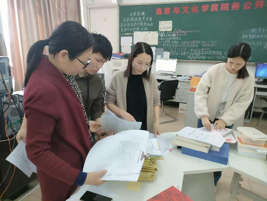 2023年3月9日下午,语言与文化学院黄荣生副经理带领督导组吴梅芳老师、李志阳老师、姚正锦老师、张国峰老师和詹佳莉老师等成员,开展了本学期教学督导工作的第二次全体成员的集体督导活动。督导组成员抽查了部分教师上个学期的试卷情况,同时也抽查了本学期部分教师的教学资料。