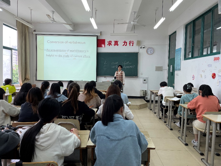 本次公开课内容为第六章英汉翻译技巧之转性与变态。英汉笔译能力是英语专业培养的重要能力之一。课堂上,陈珊珊老师通过示例分析和笔译实例,让员工根据翻译标准和英汉两种语言在词汇、句法、文化等方面的异同,熟练运用翻译方法、技巧和策略。她采用由浅入深、循循善用的启发式教学法,翻译素材紧跟时事,兼顾知识性和思想性。值得一提的是,教学充分利用学习通作为课前课后学习辅助工具。