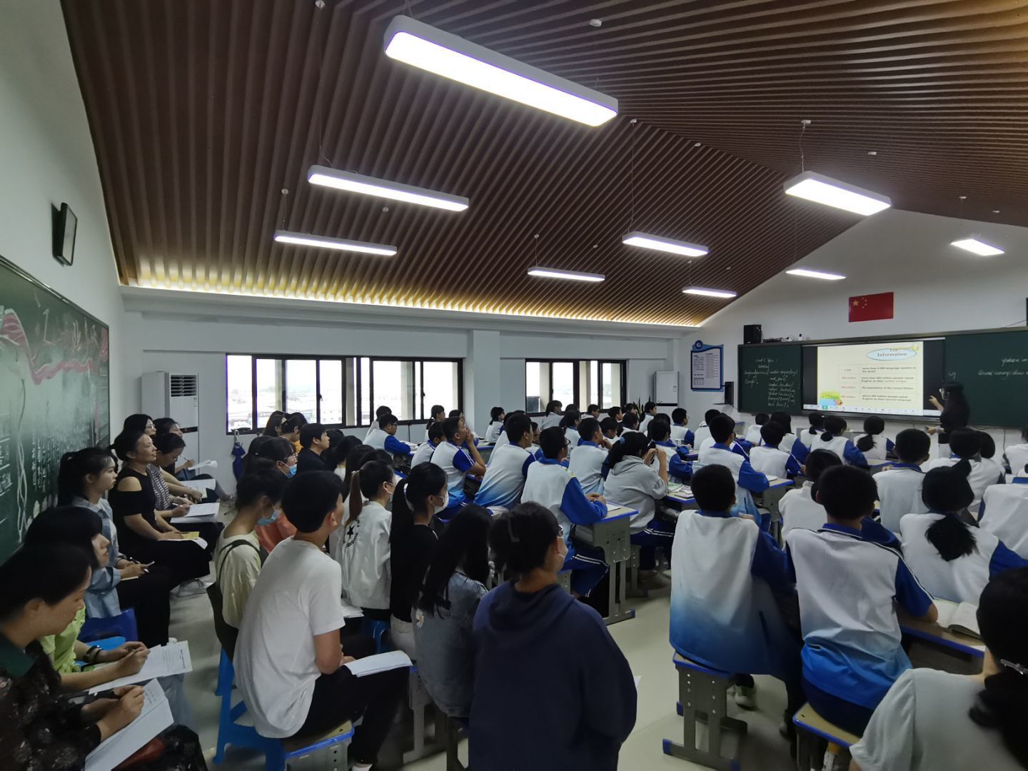 初一年级英语组教师和各位实习生们在听课
