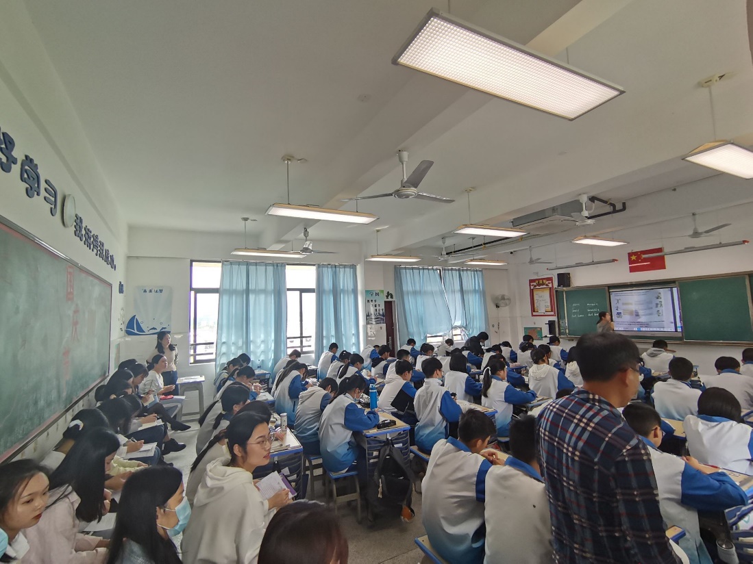 2021年10月13日上午9点25分,蕉城区第一实验学校的英语老师和实习生们聚在九年级二班的教室后排,聆听吴夏莲老师关于支架式教学法在初中英语写作应用课题的公开课授课,并一起交流探讨初中英语课堂教学的方法策略。教育是一场旷达而明净的远行。谢老师教学手段多样,教法灵活,活跃课堂气氛活跃,所采用的的情境教学法加深了员工对于文本的理解。在听课过程中,我们学到了很多知识,可谓收获满满。