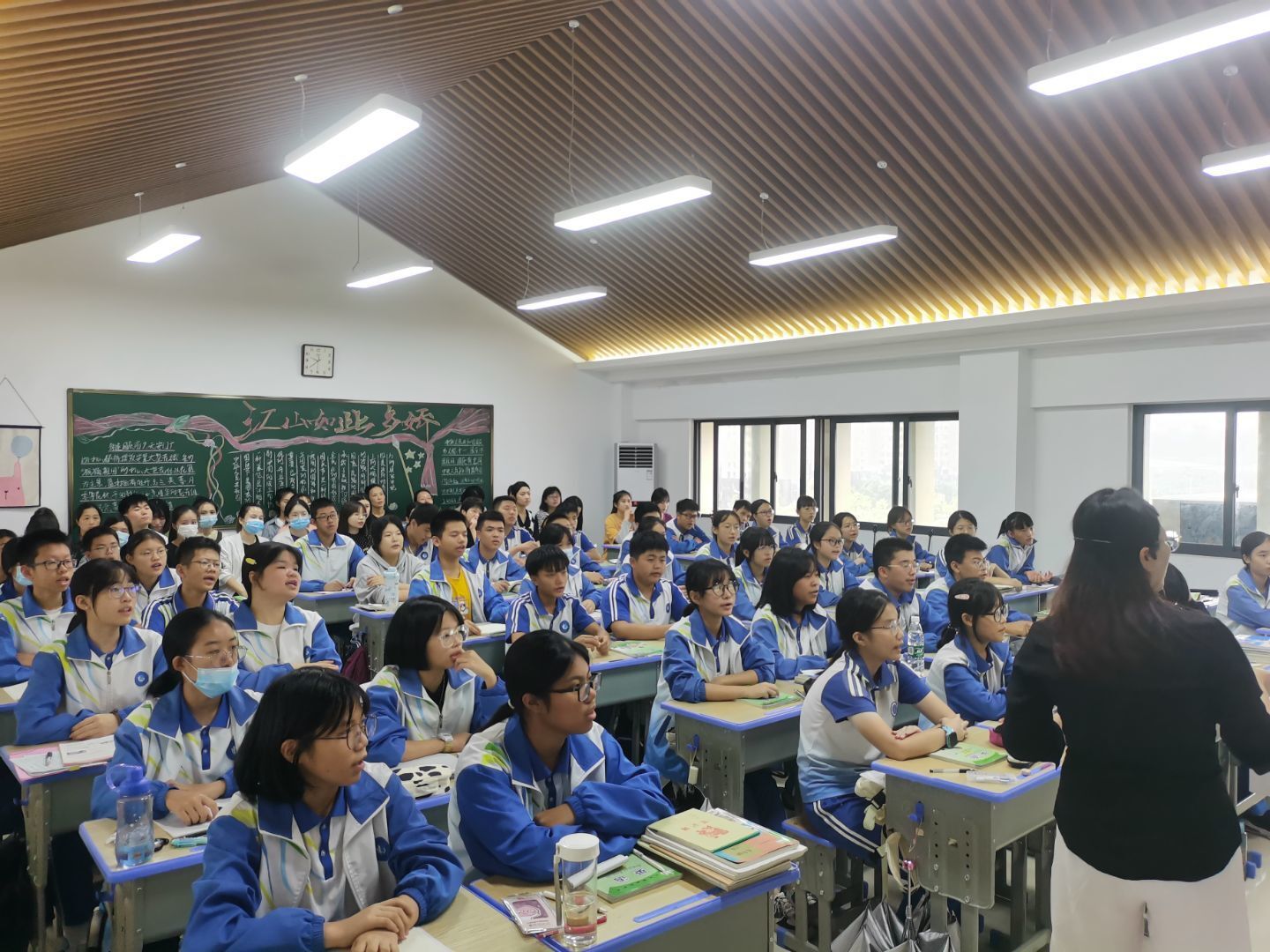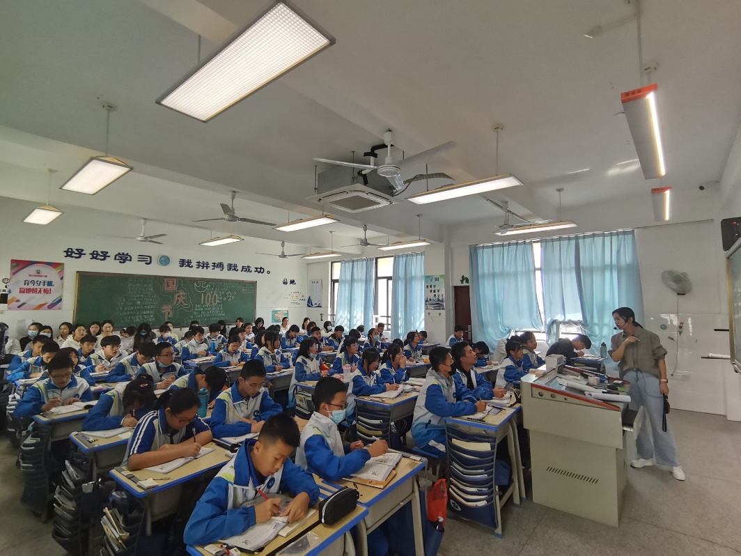2021年10月19日上午十点二十分,实习生们再次与蕉城第一实验中学的英语教研组聚集在教室,一起聆听八年级一班柳萍老师的英语公开课。柳萍老师对于练习的讲解有自己的一套方法,能准确的抓住员工的求知欲,很好地凝聚了课堂的气氛。
