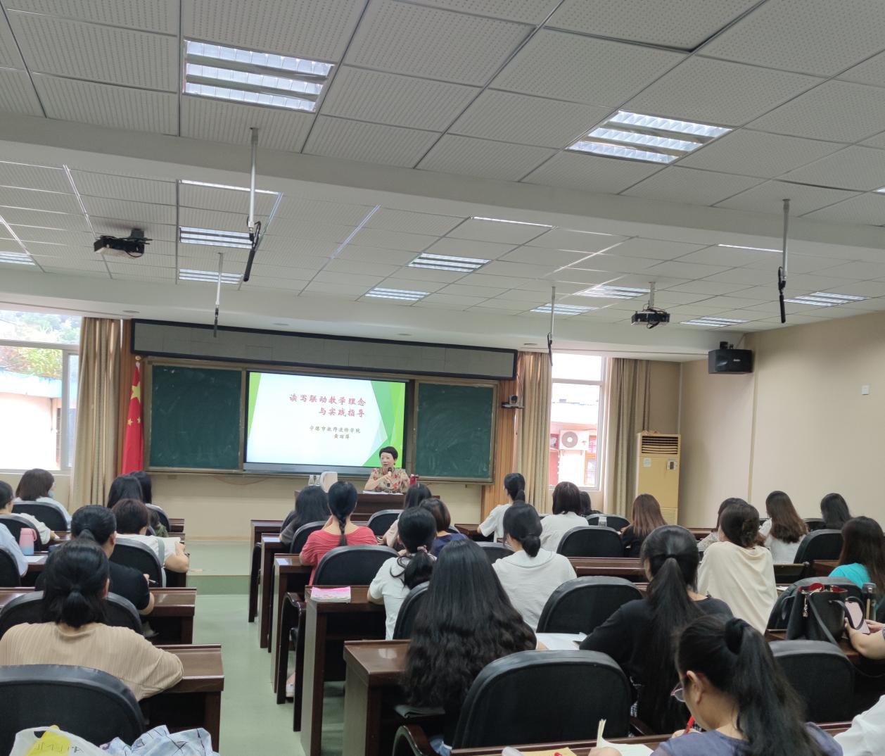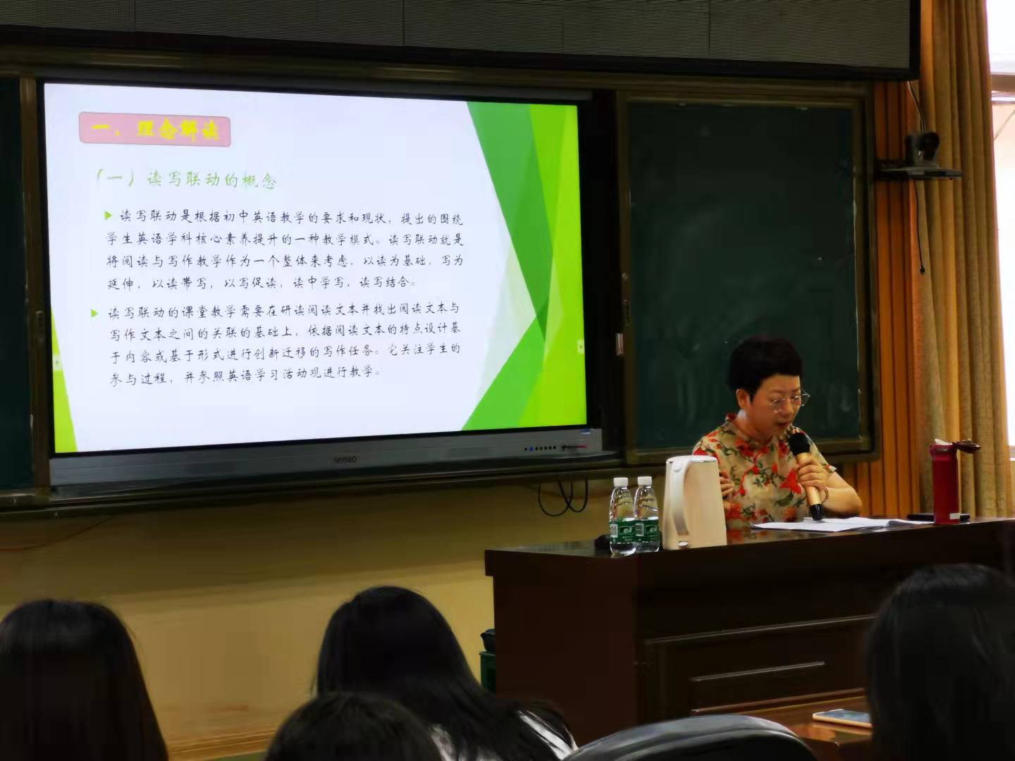 滴答的秋雨预示着金秋的来临,丰收的脚步也随着秋雨接踵而至,今天是我们来到宁德市第十中学实习的第二天,很荣幸一起听取了来自宁德市教师进修学院的黄丽萍老师为我们带来的研究成果,共同分享这独一份的金秋“硕果”——读写联动教学理念与实践。