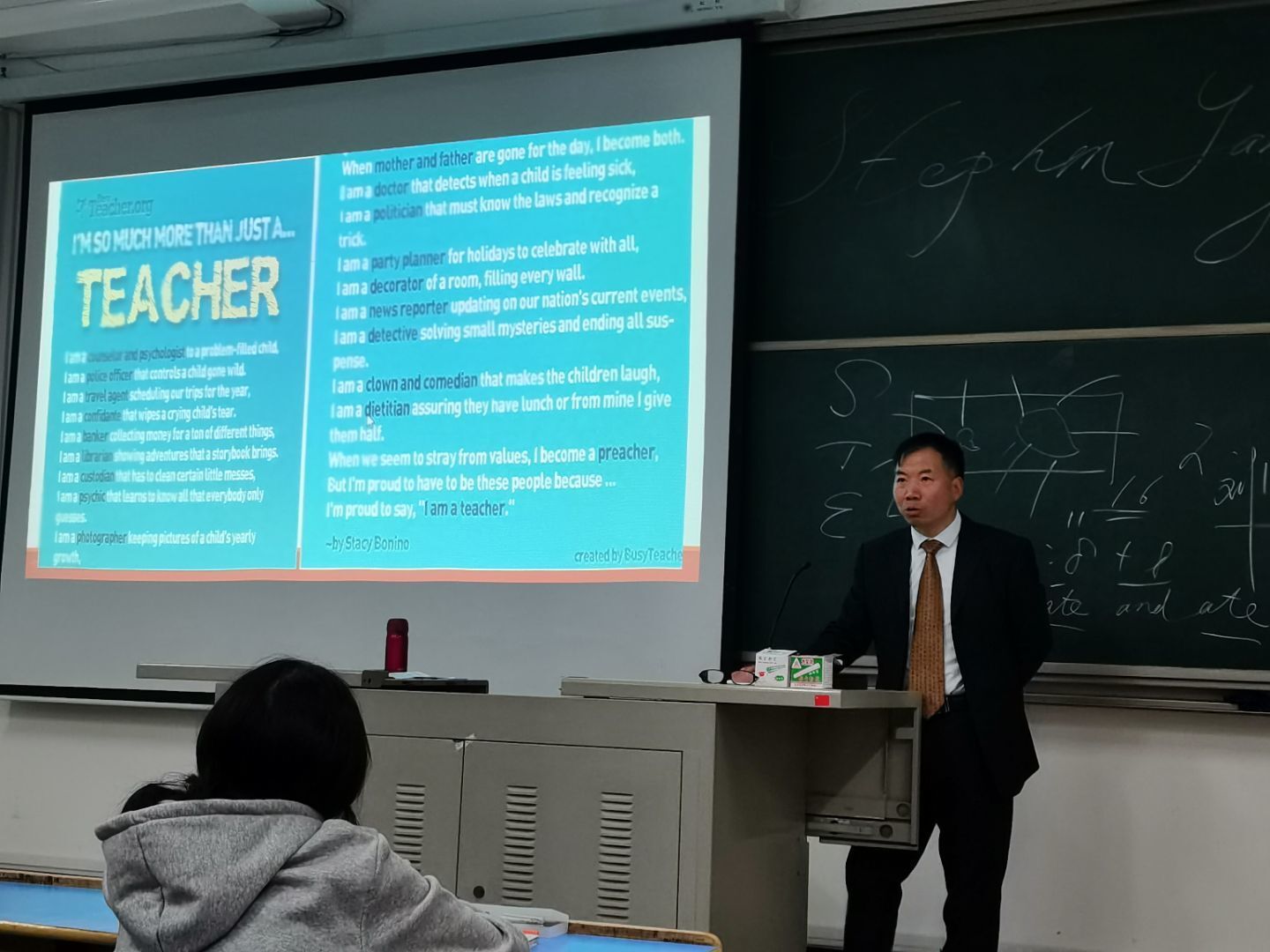 2020年12月11日,语言与文化学院英语系优秀员工、外聘教师杨良雄教授在求知楼AA301为英语系师生开设“TPACK视域下未来英语教师专业发展规划”学术讲座。