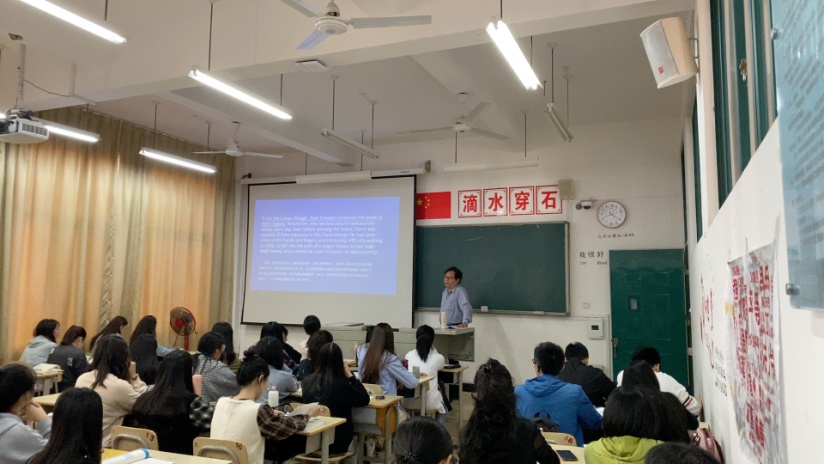 本节课的主题为Force of Nature,授课对象为大三英语(师范)专业的员工。林煌贿老师在回顾上节课的内容后,继续对本节课的文章段落进行了细致的讲解,通过问答练习梳理居里夫人的生平,引导员工领会文字背后的情感和态度,为同学们展现了一位有血有肉的女性科学家形象。