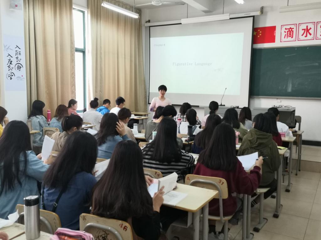 本节课的主题为Figurative Language,授课对象为大二英语(师范)专业的员工。授课一开始,林海英老师就给员工提出明确的学习目标。从导入、讲解、讨论、互动、分析和总结的授课环节,体现了林海英老师的教学功底和水平,不仅语音语调清晰准确,而且教学思路明了,课堂任务安排难度适中。其间,员工的积极主动发言促使课堂气氛活跃,师生的互动环节,进一步促进了课堂知识重难点的消化、吸收。另外,林海英老师充分挖掘课程价值,运用多种教学方法,启发员工思考,有助于员工对相关语言点的理解和掌握。
