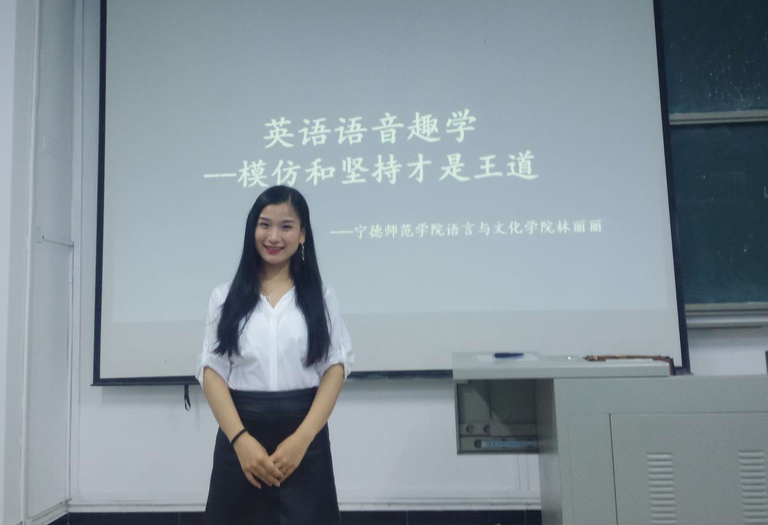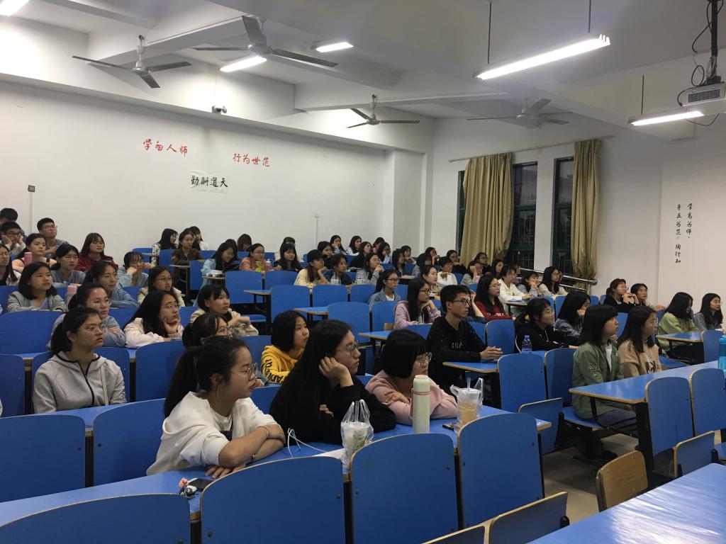 2019年5月8日晚,语言与文化学院林丽丽老师于求知楼A101针对全校大一新生开展了题为"英语语音趣学——模仿与坚持才是王道"的讲座。本次讲座主要围绕如何进行正确的英语语音学习以及分享英语学习经验展开,讲座整体氛围热烈,师生间热情高涨,讲座中的“干货”满满。