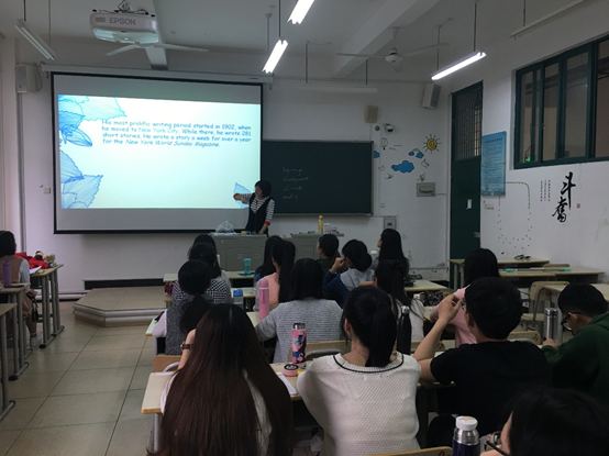 为进一步探讨教学规律、研究教学方法、推广教学经验,4月4日上午,英语系黄薇老师在求知楼A302开设了《英语经典小说赏析》课程示范课。课程主题为美国短片小说家欧亨利及其作品赏析。英语系部分教师观摩了此次示范课。