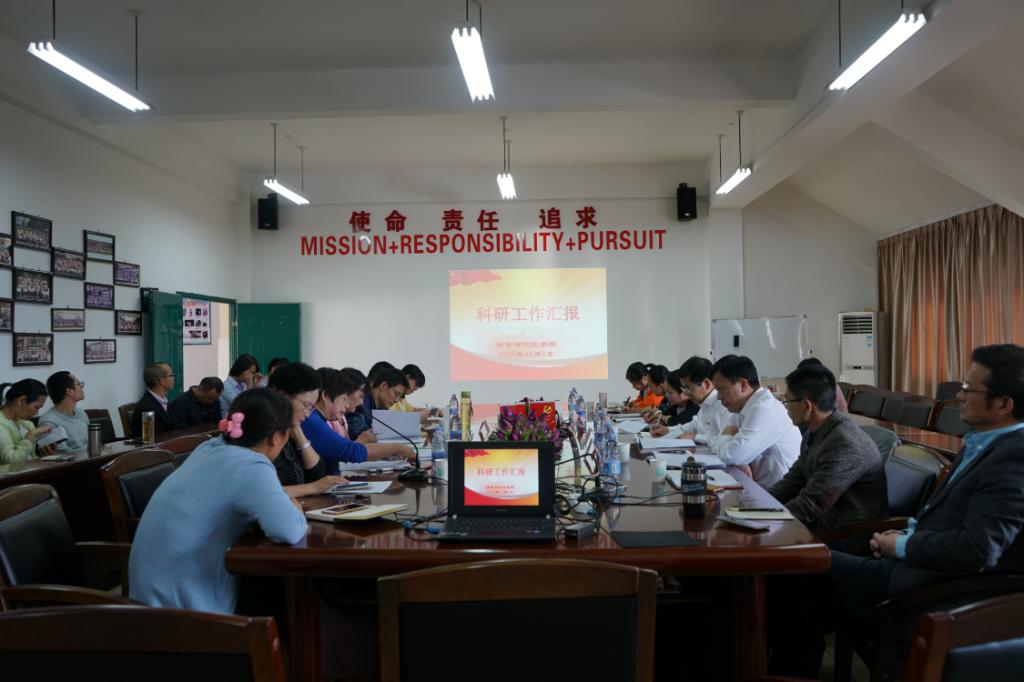语言与文化学院领导班子成员、各系主任及教师代表参加了调研座谈。陈丽冰副经理代表语言与文化学院做了专题汇报,主要就语言与文化学院的科研现状、开学初开展的科研工作、今后的科研工作思路、下一阶段的工作计划及存在的问题等五个方面进行了汇报。闽东文化研究中心、畲族文化中心的伊漪主任、陈开福副主任汇报了两个研究中心今后的研究方向和工作思路,与会老师也结合自身的科研情况做了发言。
