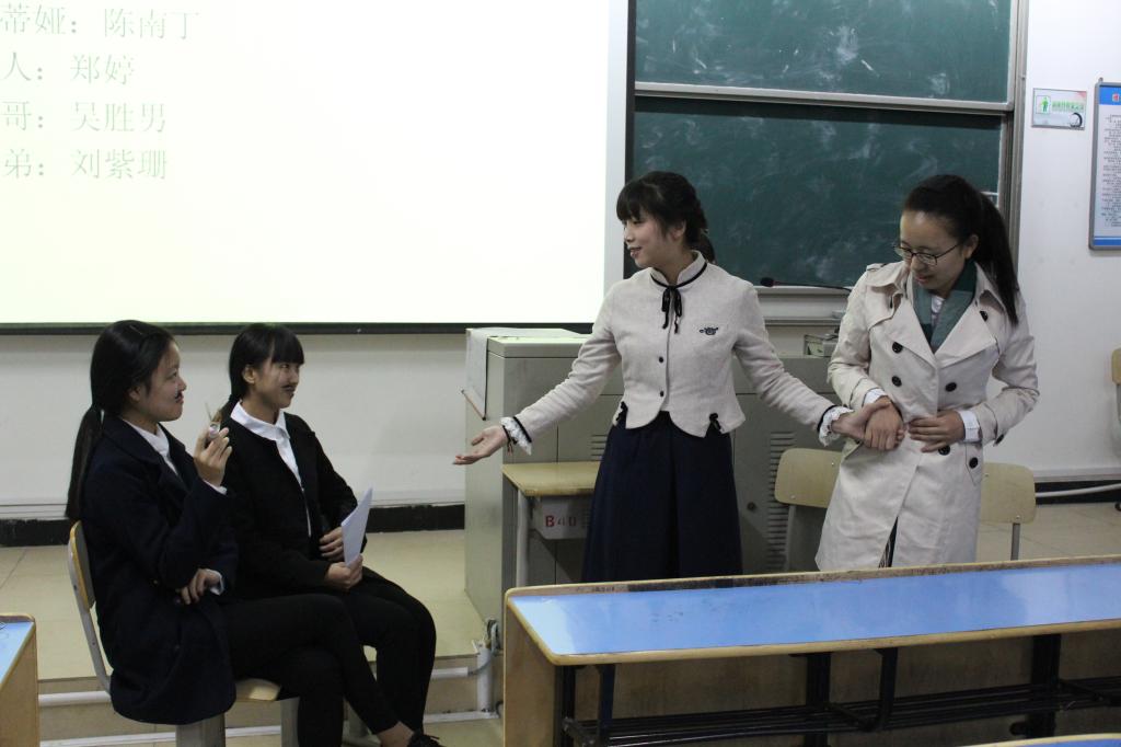 11月24日上午的第1234节课,是汉语言文学系副教授吴梅芳的《外国文学史》,这几节课她一改往日以老师讲授为主的方式,让2014级师范班和文秘班的同学们演出莎士比亚的剧作《李尔王》、《麦克白》《仲夏夜之梦》等名剧片段,同学们自己改编自导自演,全情投入,课堂顿时热闹非凡。在同学们看来“通过自身演绎,加深了对文学作品的理解,知识的掌握也因此变得更加牢固”。