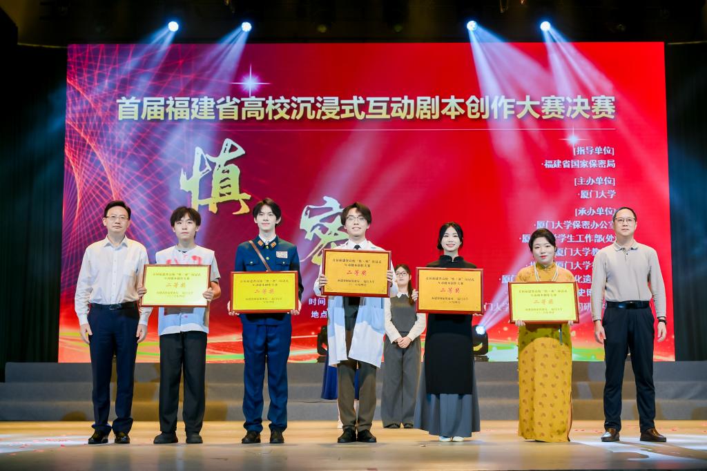 4月25日,由福建省国家保密局、厦门大学主办的“慎·密”主题沉浸式互动剧本创作大赛决赛在厦门大学思明校区建南大会堂落下帷幕。历时4个月,来自全省21所高校的180余支队伍同台竞技,50支队伍晋级决赛。经初赛、复赛及决赛网评环节的层层选拔,最终15支队伍脱颖而出,站上决赛舞台,以笔为刃、以演为媒,生动再现隐秘战线上的热血传奇。
