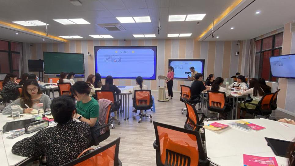 本节课为线上和线下相结合的“翻转课堂”混合式听力教学模式。杨广烨老师使用“超星学习通”来进行“翻转课堂”的课前部分实施,在智慧教室完成“翻转课堂”的课中活动,解决听力能力建设,使混合式教学实现教学信息化。杨广烨老师强调以员工为中心,给员工提供机会展示自我,组织任务让员工进行小组合作与讨论。这一方式使员工积极充分地参与到整个学习与产出的过程,而这个过程与产出导向教学法的产出、促成、评价的概念相呼应,将教师讲授与员工的小组合作、个人展示等方式相结合,改变了以往的教师一人唱“独角戏”的授课方式。 课后,利用“学习通”与员工在课内外随时进行互动和沟通,及时解答员工的问题,了解学习效果。整个授课过程体现了内容的“高阶性”,教学模式和方法的“创新性”,任务的“挑战度”。