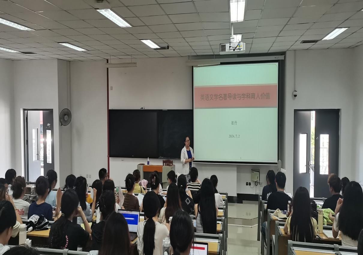为了进一步推动“三全育人”综合改革试点工作,7月2日,beats365亚洲版官网英语系在讲堂群301举办了个性培养周系列活动之“英语文学名著导读与学科育人价值”的讲座。此次讲座由吉林外国语大学崔丹教授主讲。英语系师生共计150名左右出席。