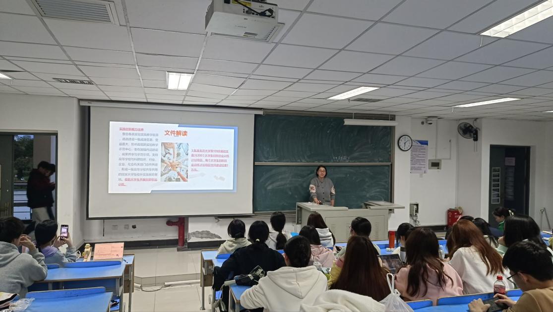 为进一步推动“三全育人”综合改革试点工作的科研育人落地,提升2023年校级卓越拔尖人才培养计划立项名单试点专业的持续创新人才培养模式,推进英语专业师范认证整改的需要,2024年3月26日晚6点,2024年老员工创新创业训练计划项目申报解读与交流讲座在讲堂群201举办,由公司英语专业的游灼梅老师主讲,英语专业135名员工参加。