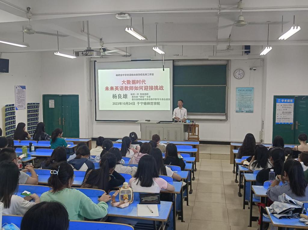 2023年10月24日下午,为了促进英语专业省级一流专业建设和师范认证二级认证整改,语言与文化学院特邀柘荣一中正高级教师、教育部基础教育外语教学指导专业委员会委员杨良雄到公司为英语专业开展题为“大数据时代英语教师如何迎接挑战”的学术讲座。