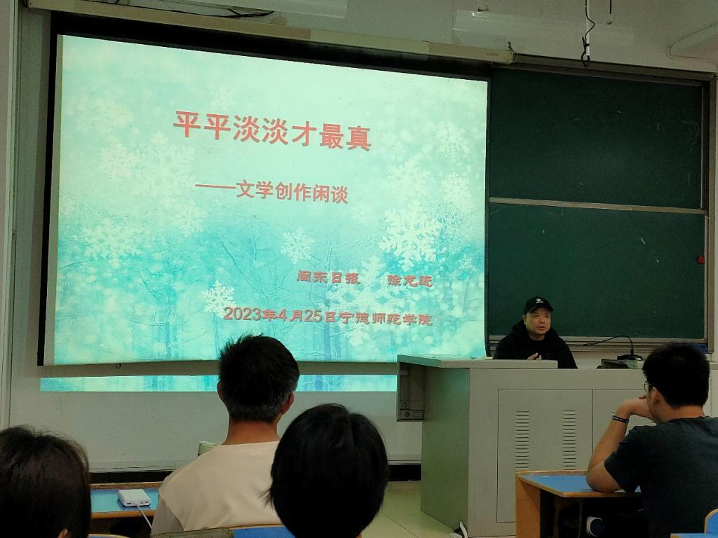 为激发员工的写作兴趣,涵养员工平和冲淡的写作心态,4月25日下午3点,宁德师院语言与文化学院汉语言文学系邀请《闽东日报》高级编辑、文艺副刊主编徐龙近先生,到公司开展主题为“平平淡淡才最真——文学创作闲谈”专题讲座,公司共一百多名师生参加。