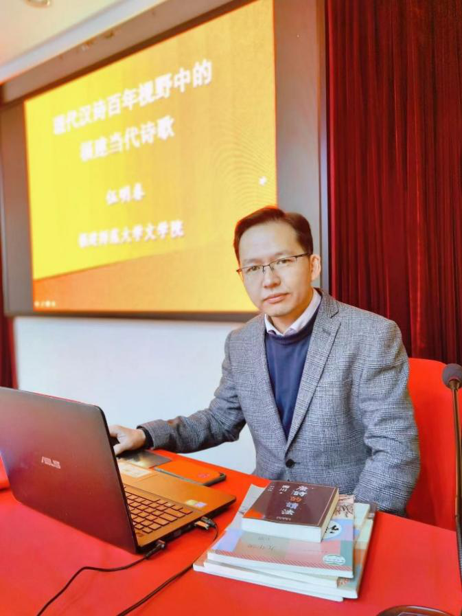 伍明春教授围绕“现代汉诗百年历史中的闽人身影,现代汉诗话语版图呈现的福建场域,多向度展开的闽地想象,福建诗歌写作群落的嬗变,关于福建当下诗歌写作的几点思考”五个方面来讲述百年来福建当代诗歌的发展历程和前景。