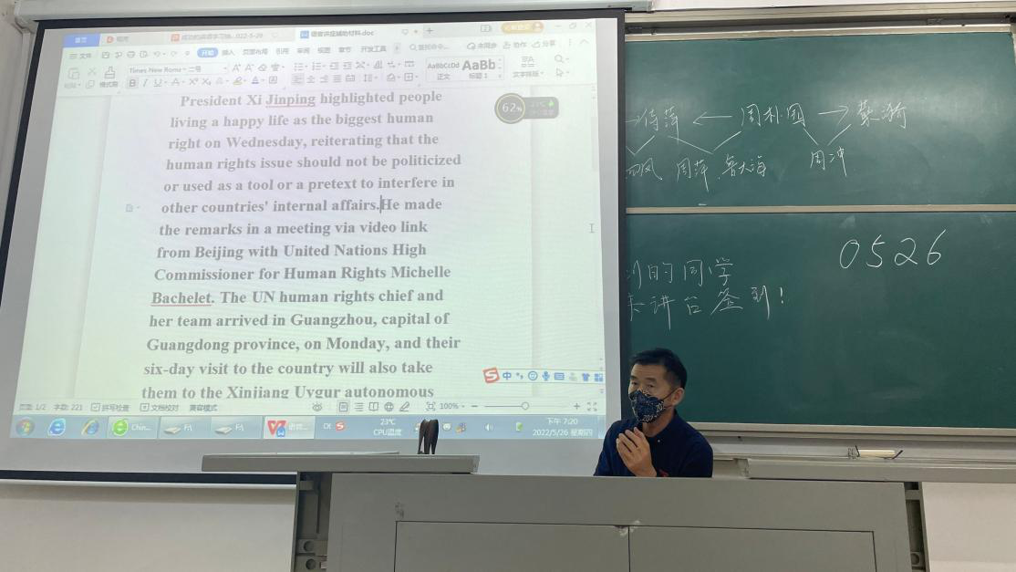 2022年5月26日晚,语言与文化学院英语专业负责人龚帆元教授于求知楼A301,为英语师范生开展了“英语师范生语音素养提升方法”讲座。本次讲座主要围绕发音规律和英语发音的练习策略两点,英语师范专业四十多位员工参加了讲座,师生间进行了多次互动,气氛轻松活跃。