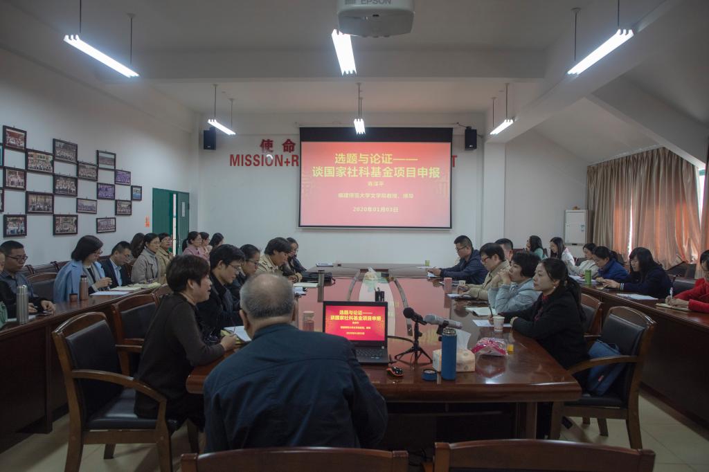 2020年1月3日,公司邀请福建师大文学院教授、博士生导师陈泽平教授到公司开展学术讲座,他结合自己多年来核心期刊、权威期刊审稿专家的经验,以及自己发表核心期刊的经验,指导年轻教师如何做好科研工作的个人规划。1月4日上午为申报国家社科基金项目的老师们作了题为《选题与论证——谈国家社科基金项目申报》的讲座,他以自己曾主持4项国家社科基金项目的申报经验,从申报书选题如何提出科学问题,如何确定研究对象和研究框架,如何进行学术梳理等方面发表了独到的见解,并在会上具体点评和指导老师们的申报书中存在的问题和注意事项,讲座由陈丽冰副经理主持。