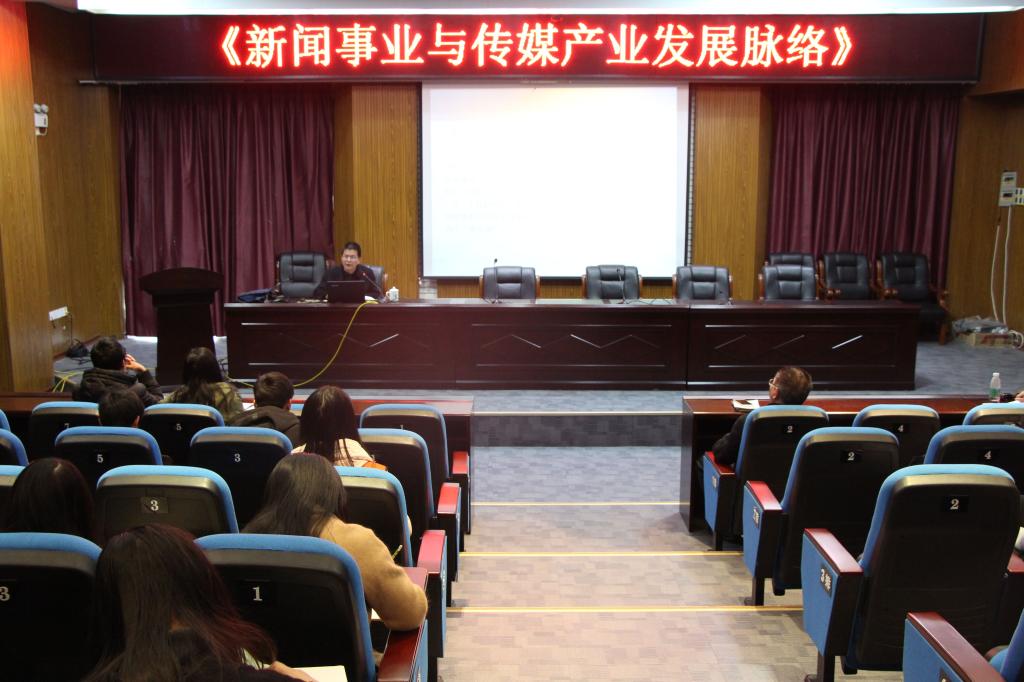 12月19日,语言与文化学院邀请福建日报社副总编辑、高级记者潘贤强开展以“新闻事业与传媒产业的发展脉络”为主题的讲座。