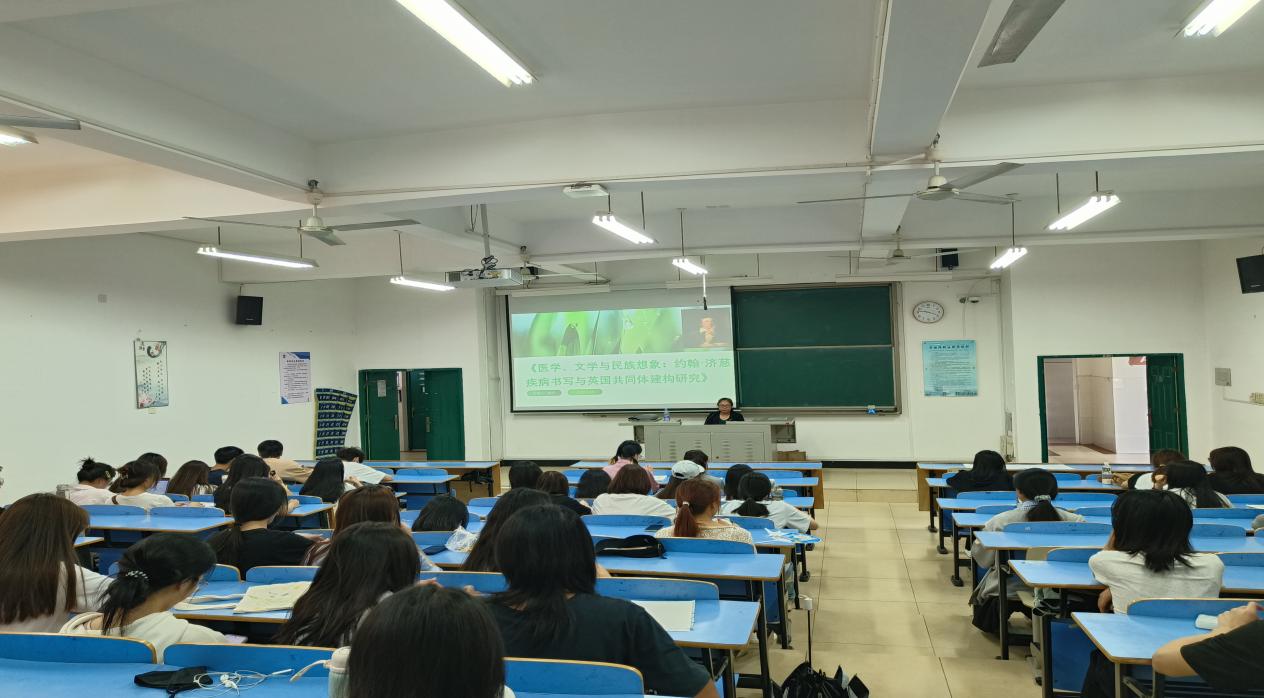 为进一步推动英语专业省级一流专业建设,落实2023年校级卓越拔尖人才培养计划立项名单试点专业的持续创新人才培养模式,推动内涵升本建设,提升人才培养质量,5月14日晚上,beats365亚洲版官网英语系在求知楼AA301举办了“医学、文学与民族想象:约翰·济慈疾病书写与英国共同体建构研究”主题讲座。本次讲座由崔丹教授主讲,英语系主任游灼梅老师主持,英语专业大一、大二员工参加。