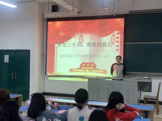 22汉师1班伟荣香表示:在这次团日活动过程中,有些话令我印象深刻,如:要增强全党全国各族人民的志气、骨气、底气,不信邪、不怕鬼、不怕压,知难而进、迎难而上,统筹发展和安全,全力战胜前进道路上各种困难和挑战,依靠顽强斗争打开事业发展新天地。
