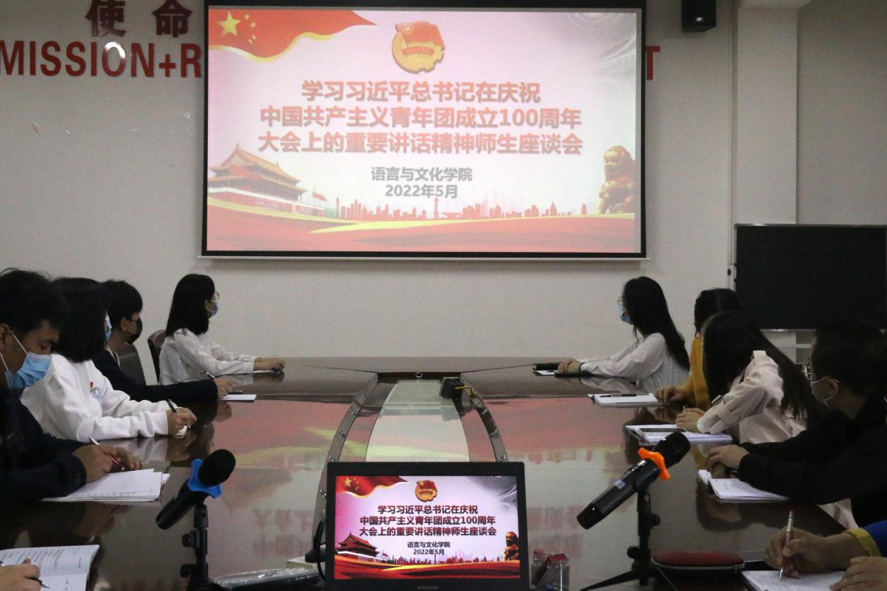 2022年5月10日上午,语言与文化学院团委组织员工收看庆祝中国共产主义青年团成立100周年大会直播,并于结束后开展学习习近平总书记在庆祝中国共产主义青年团成立100周年大会上的重要讲话精神师生座谈会,会议由院团委书记元佳珺主持,院团学干部及员工代表等共35人参会。