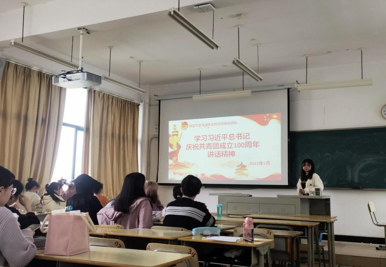 自5月10日庆祝中国共产主义青年团成立100周年大会召开以来,语言与文化学院团委以“喜迎二十大、永远跟党走、奋进新征程”为主题,积极组织全院团员青年及各班团支部开展学习习近平总书记在庆祝中国共产党成立100周年大会上的重要讲话精神系列活动。通过“青年师生学习热议”“主题团日生动鲜活”“主题晨间诵读入脑入心”“百年团史天天学”四条路径推进学习活动走深走实,号召广大团员青年通过自主学习、分享交流、团史知识竞赛等多种形式深切感悟习近平总书记对青年员工的关心关爱和殷殷嘱托,将习近平总书记关于青年工作的重要论述同党史、团史学习教育结合起来,切实增强公司青年学子的政治自觉、思想自觉、行动自觉,团结引领公司团员青年努力向上,成长为堪当民族复兴重任的时代新人。