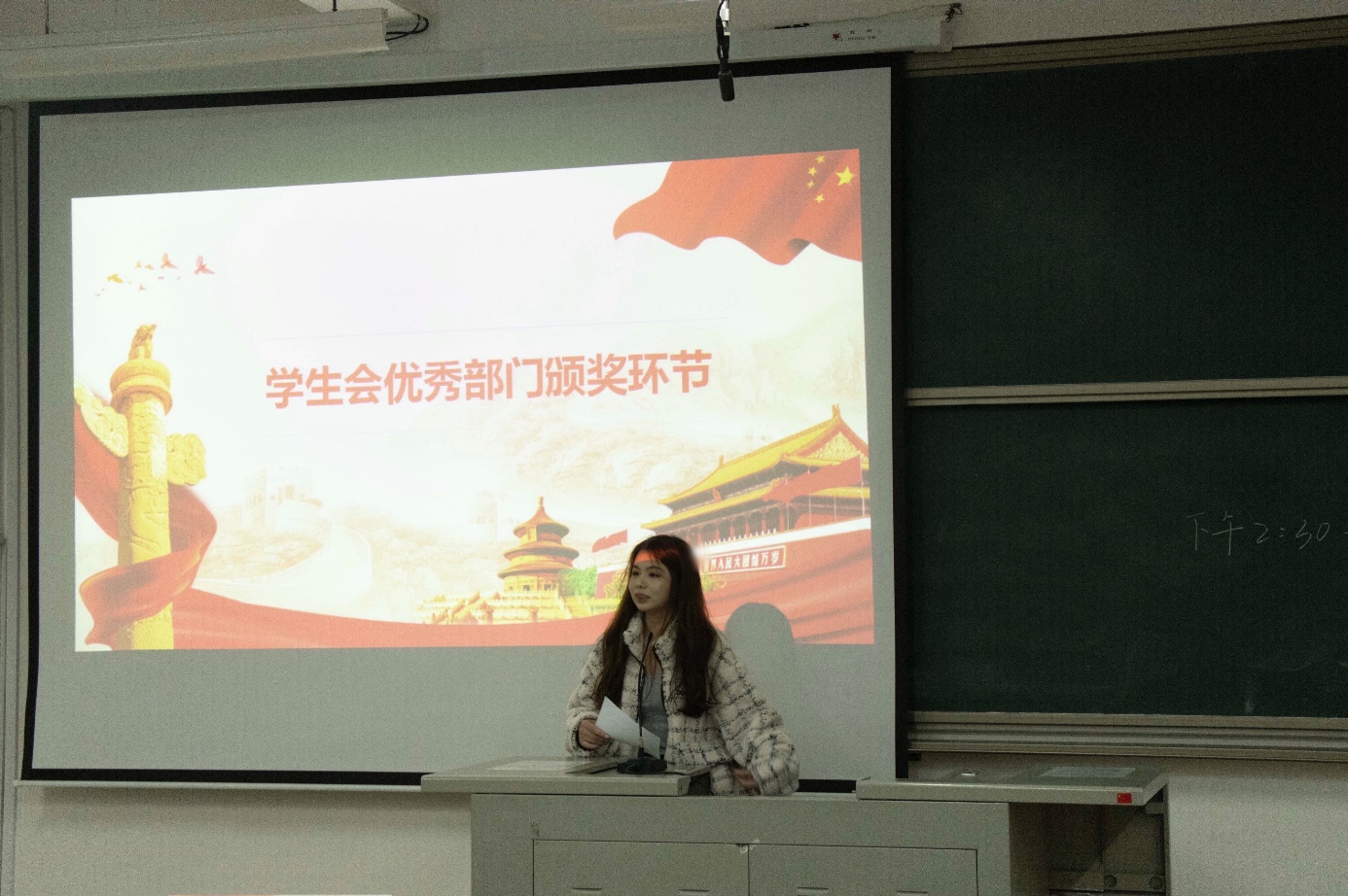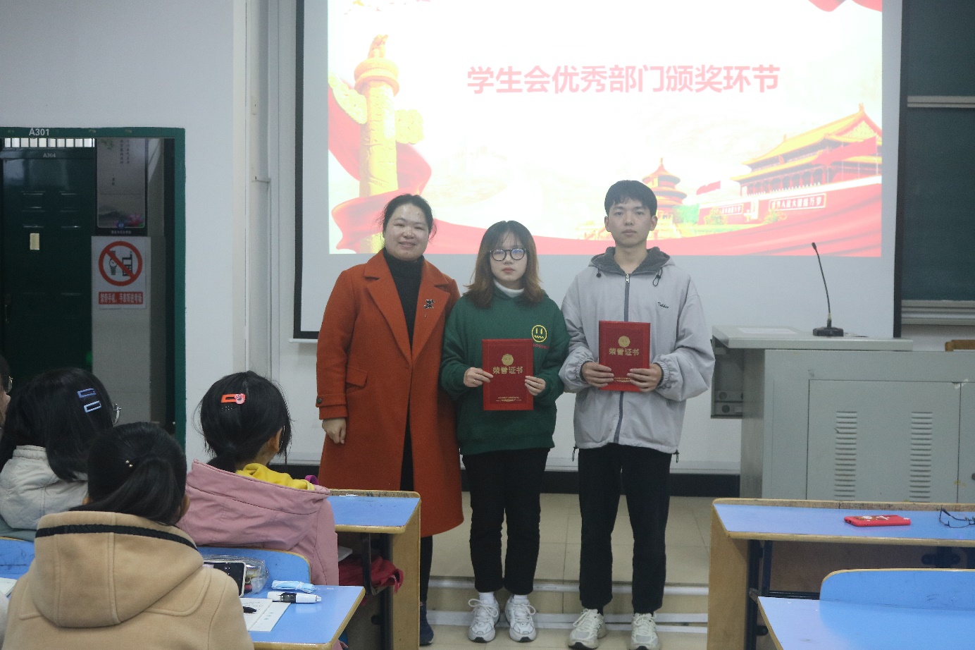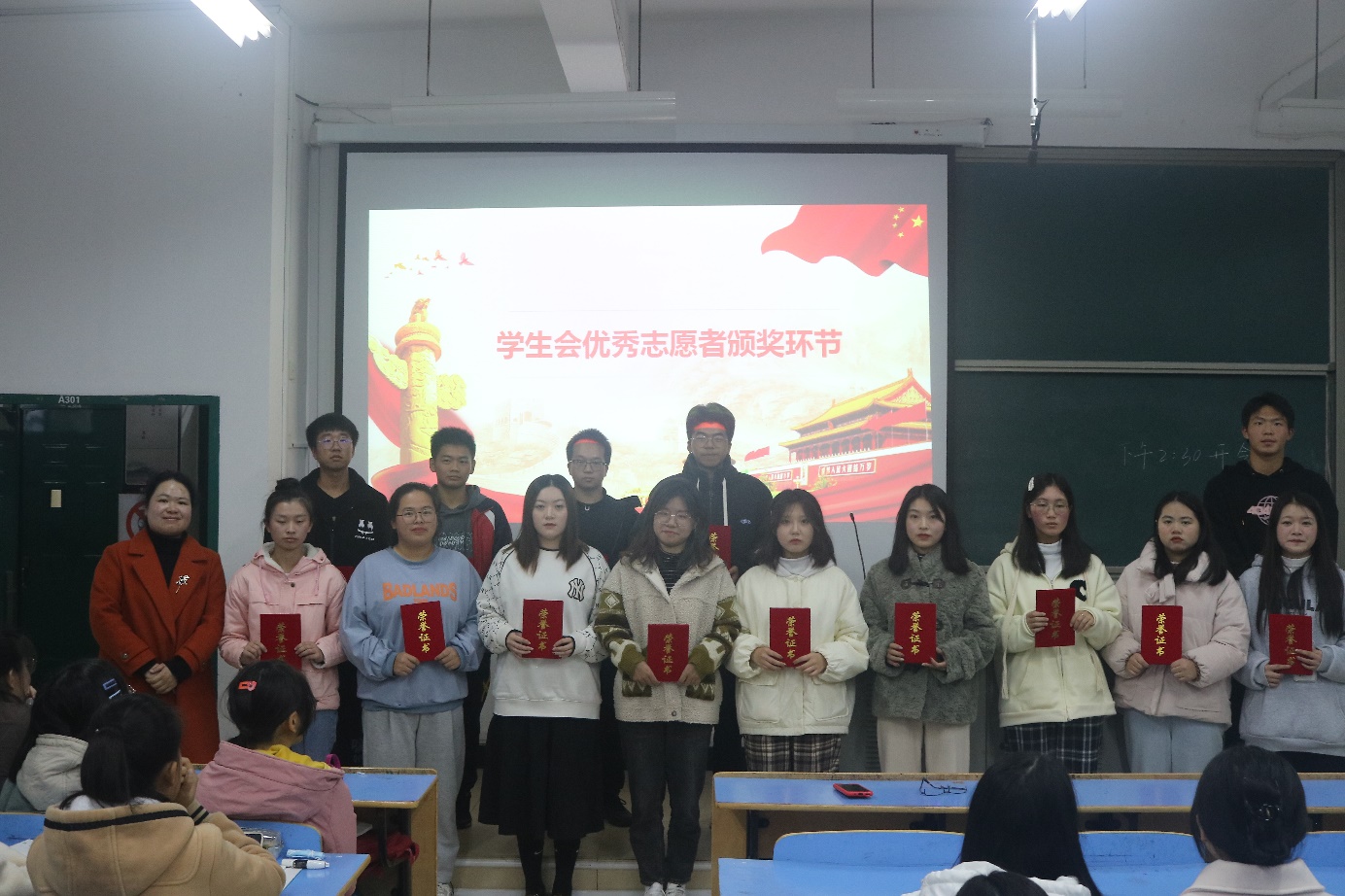 最后,团委书记元佳珺为获得上一学年员工会优秀部门的体育运动部、生活权益部颁发证书,也对各部门的优秀志愿者进行了表彰。