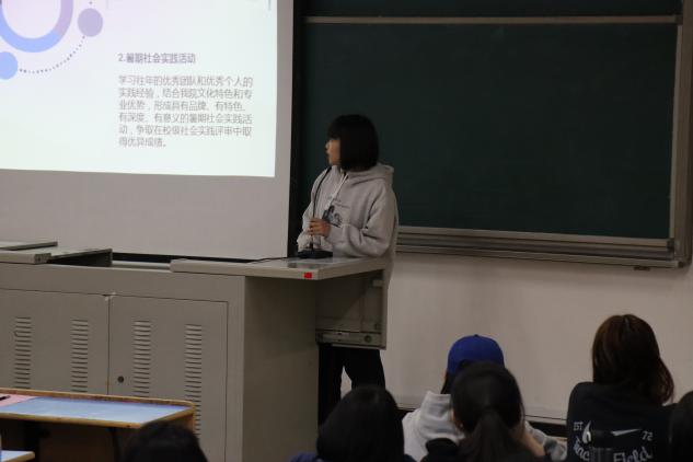 会上,学院团委王嘉宁、学术部郑宇杰,实践部陈心怡,组织部许丹妮等部门负责人分别结合各自的岗位职责,从自身工作经历出发,分享了在任职期间的成长与收获,并针对工作中存在的问题,提出了相应的解决方案,对下一阶段工作进行展望。