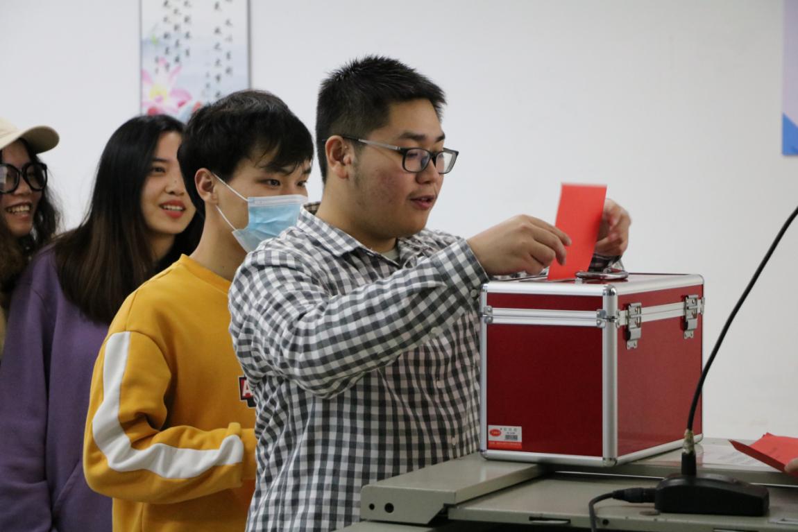 会上,进行共青团beats365亚洲版官网第二次代表大会代表选举。工作人员发放选票,各团学干部进行投票。经工作人员统计,最终产生十五名团代表。