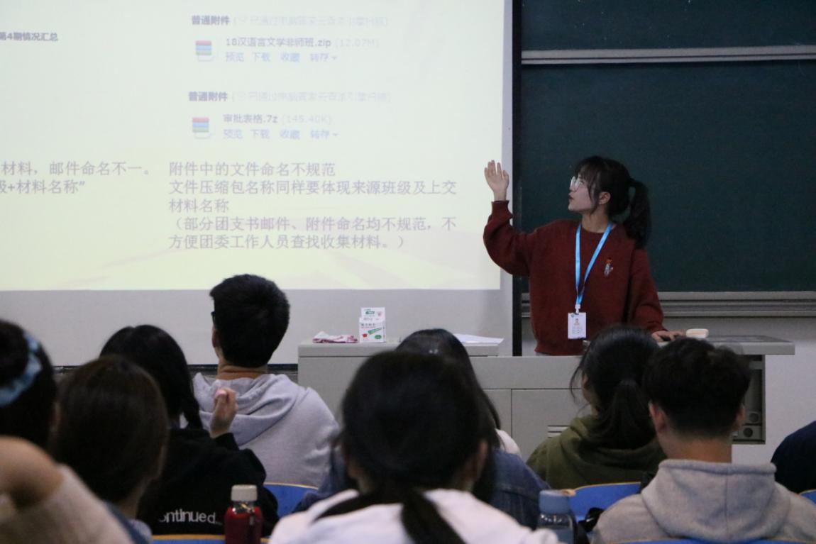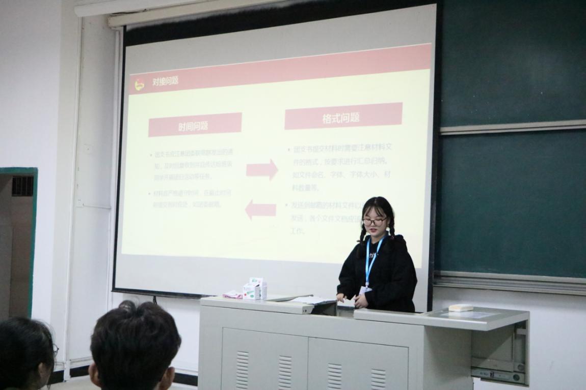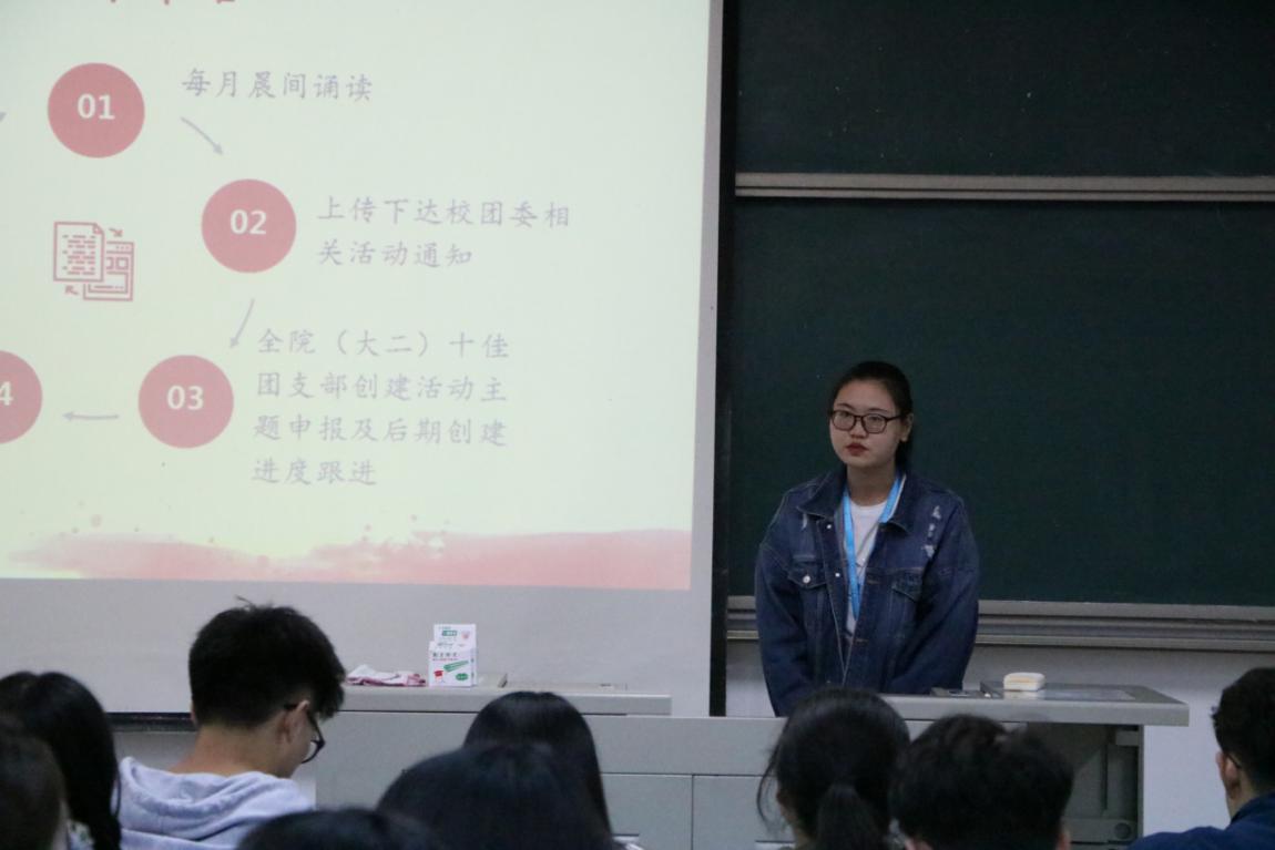 本次会议主要内容为介绍团委的主要职能,目的在于让2020级团支书了解共青团工作及开展流程。学院团委六个部门的负责人分别对各自部门分管的相关工作进行了详细介绍。