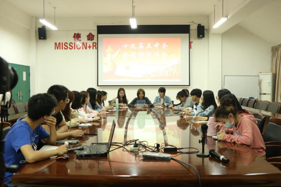 为积极推进《全省各级团组织认真学习宣传贯彻党的十九届五中全会精神》,学习和弘扬党的十九届五中全会精神,11月6日公司在求知楼AA407开展党的十九届五中全会精神学习会。
