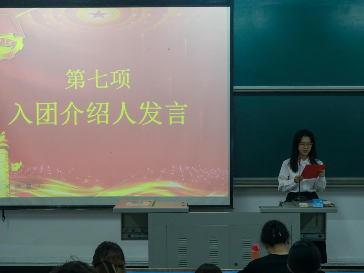 在团员代表发言环节,入团介绍人代表陈丽馨宣读了《团章》中团员的义务和权利的相关条款,新团员代表洪静和老团员代表林智恒都发言表示,作为共青团员深感责任重大,要以革命先辈为榜样,在学习、品德等方面提升自己,发挥团员青年的模范带头作用,为实现民族复兴贡献青春力量。