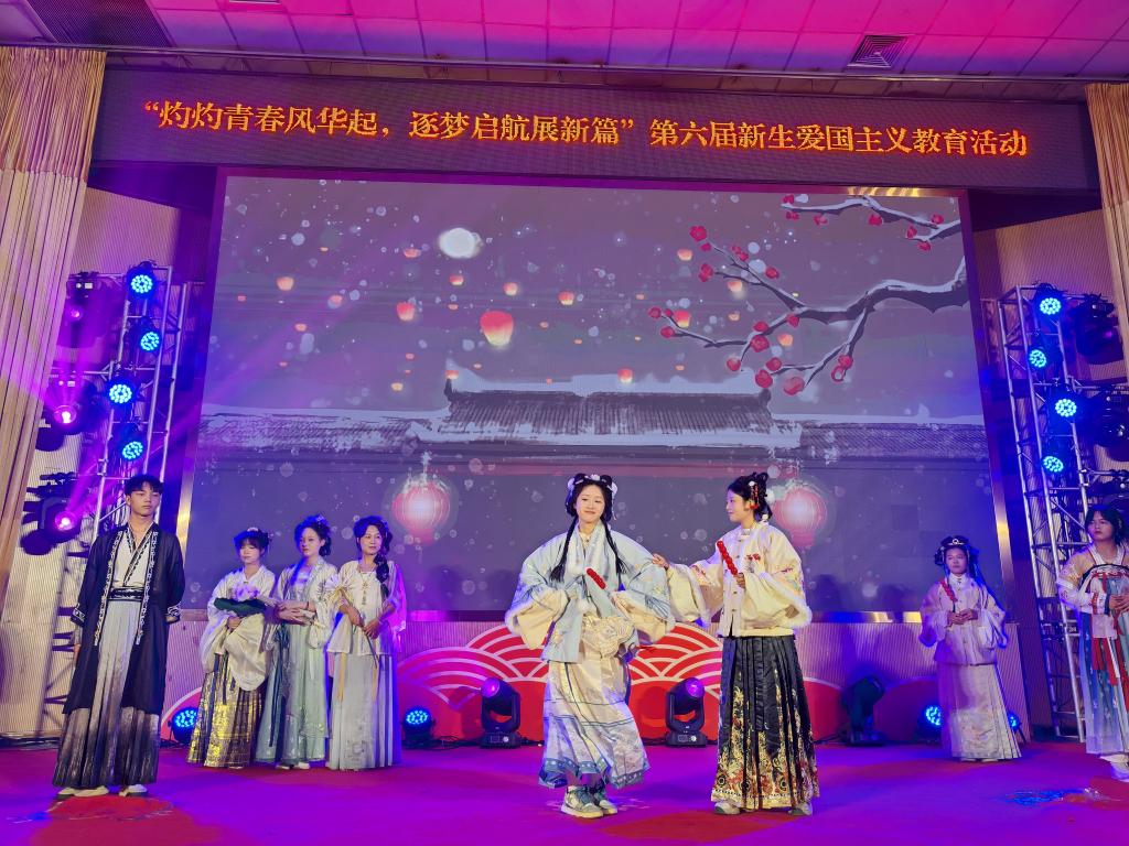 2024年12月8日,公司在图书馆报告厅举办以“灼灼青春风华起,筑梦起航展新篇”为主题的新生爱国主义教育活动。通过歌唱、舞蹈、情景剧、朗诵等多种艺术表现形式,为同学们呈现一堂生动精彩的爱国主义教育课。