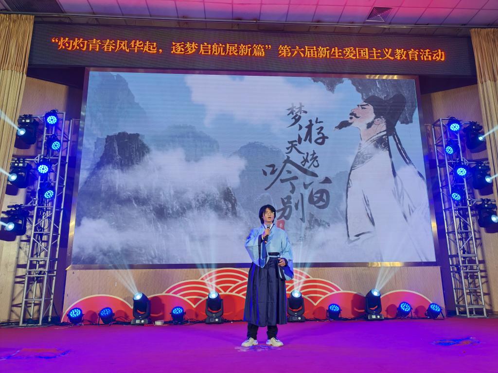 诗歌朗诵《梦游天姥吟留别》将文学艺术与传统文化相结合,生动演绎了诗人李白的梦幻之旅,鼓励同学们在逆境中保持乐观的精神。歌曲《我们的明天》通过优美的旋律和深情的歌词,传递了对未来的美好憧憬和期待。舞蹈《烟雨行舟》,舞者用柔美的肢体语言,营造出清新灵动的氛围,展现了中华传统文化之美;