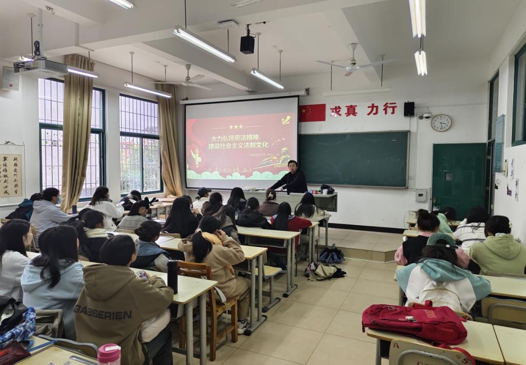 主题班会上,各辅导员结合学习宣传贯彻党的二十大精神、习近平法治思想,深入开展宪法宣传教育。加强青少年宪法法治教育,是坚持和加强党的全面领导、确保党和国家事业始终沿着正确方向前进的内在要求。为引导同学们强化宪法意识,弘扬宪法精神,建设社会主义法治文化,各辅导员向同学们介绍了全面依法治国取得的重要成就,引导员工深入体会宪法蕴含的内涵。