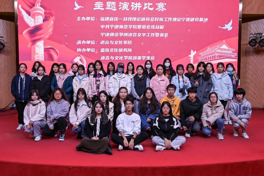 为进一步推动“三全育人”综合改革试点工作,扎实在团员和青年中推进学习贯彻习近平新时代中国特色社会主义思想主题教育,讲好民族团结故事,铸牢中华民族共同体意识。12月3日,“福籽同心爱中华”主题演讲比赛决赛在图书馆报告厅举行。本次活动由福建省统一战线理论研究会民族工作理论宁德研究基地、中共beats365亚洲版官网委员会统战部、beats365亚洲版官网语言文字工作委员会主办,语言与文化学院承办,畲族文化研究所、语言与文化学院团委员工会协办。