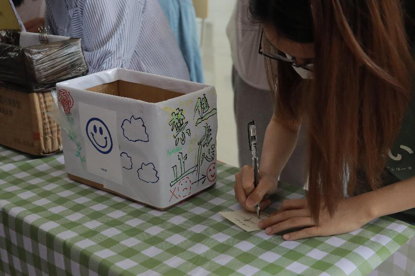5月16日下午,交换心情盲盒活动准时在语言与文化学院英语角开展,来参加活动的同学们络绎不绝,大家通过便签写下自己的快乐和烦恼,分享情绪体会。这些快乐与烦恼或是从前发生的,或是当下的心境,又或是未来所面对的。然后将快乐投入“快乐放大器”,将烦恼投入“情绪垃圾桶”,而你的烦恼可以在“情绪解忧库”得到回应。