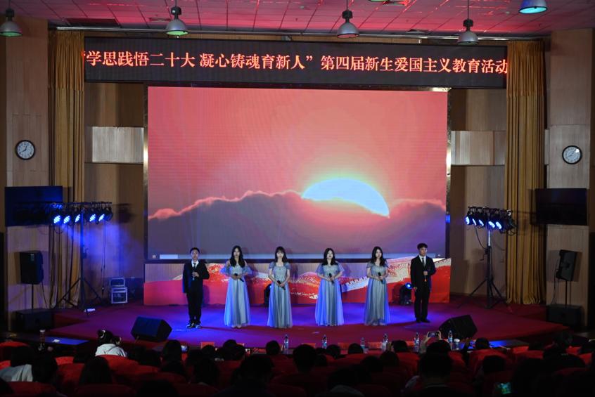 为深入学习宣传贯彻党的二十大精神,强化新生爱国教育,激励公司学子不忘初心、牢记使命,以高昂的斗志和饱满的热情争做新时代党和国家事业的接班人,3月12日晚,公司在图书馆报告厅举办以“学思践悟二十大,凝心铸魂育新人”为主题的新生爱国主义教育活动。院党委书记张晓芳,院党委副书记陶莉,院团委书记元佳珺,辅导员姜婷婷、李雪等出席本次活动。