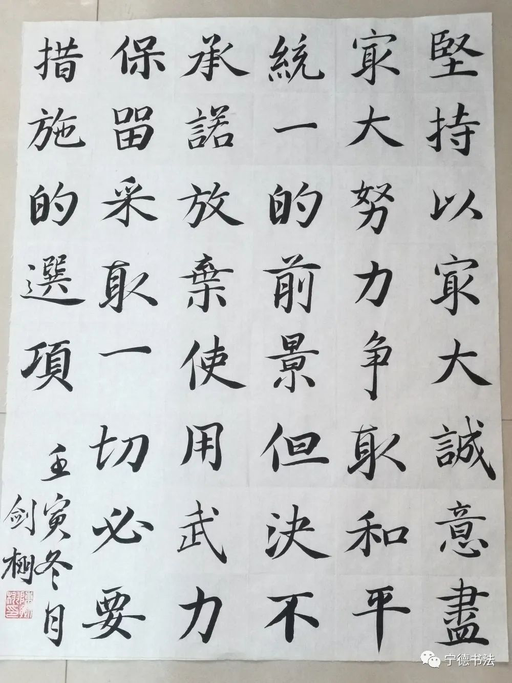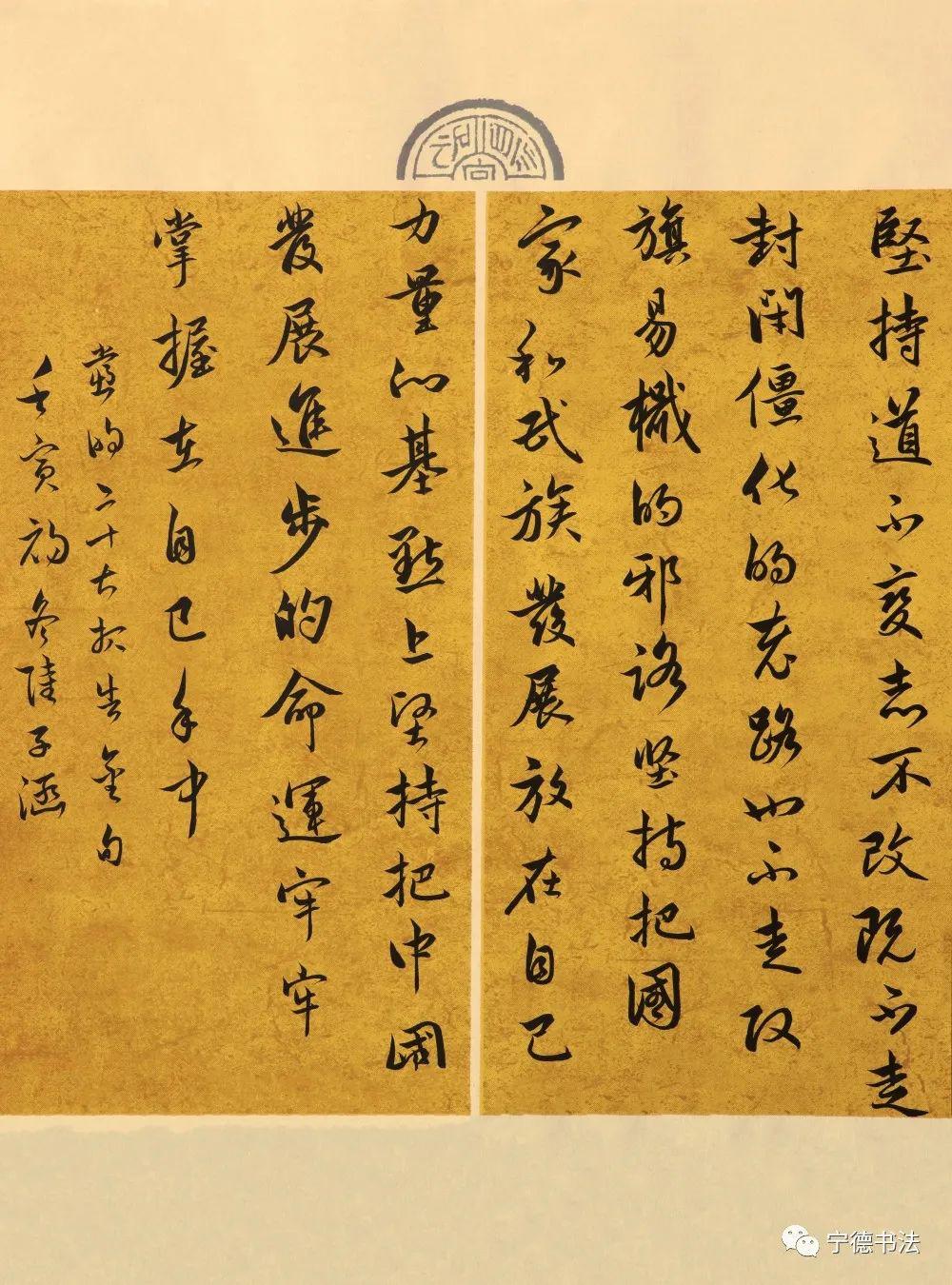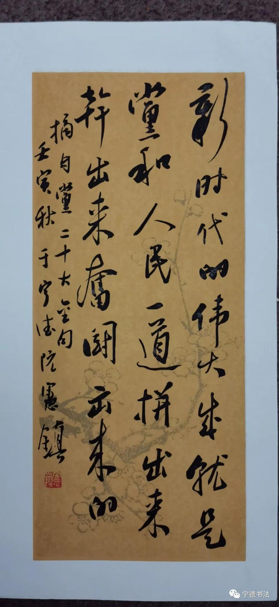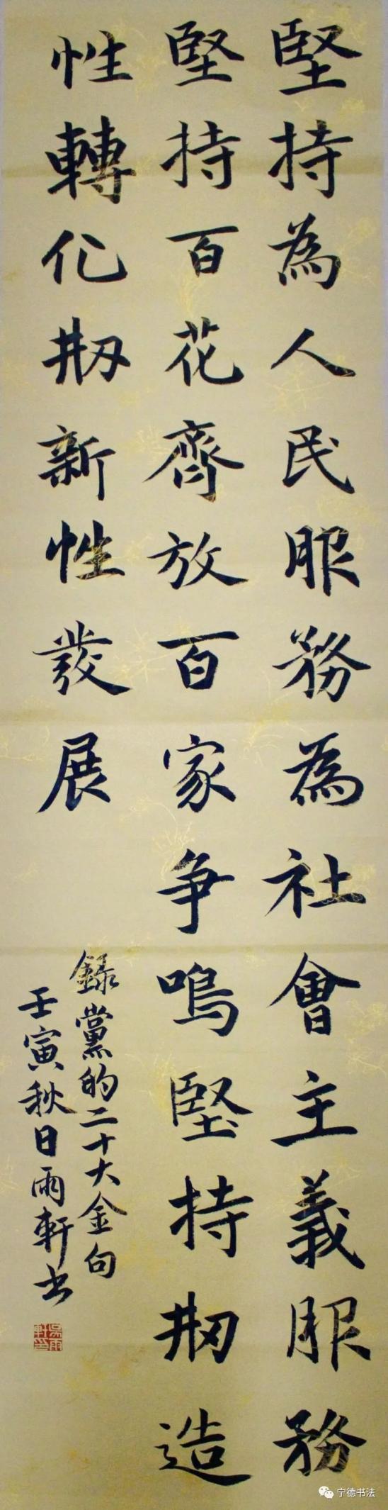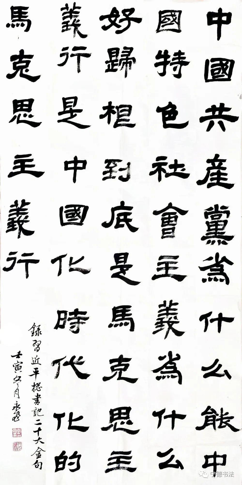 作品内容为党的二十大金句,以软笔形式书写,字体不限。