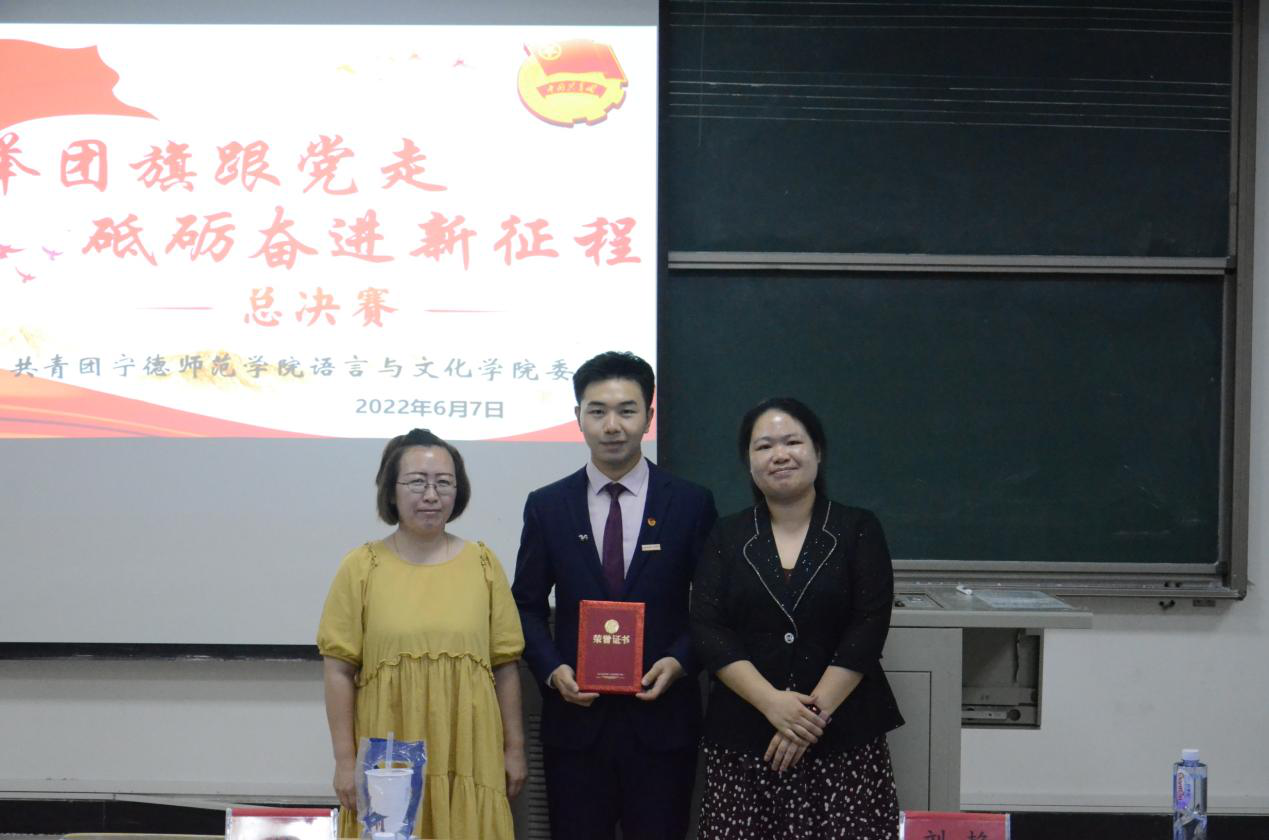 为展现百年来在党的领导下共青团工作的奋进篇章,献礼建团百年。6月7日晚,语言与文化学院团委在求知楼B201举办“高举团旗跟党走,砥砺奋进新征程”主题演讲比赛决赛。