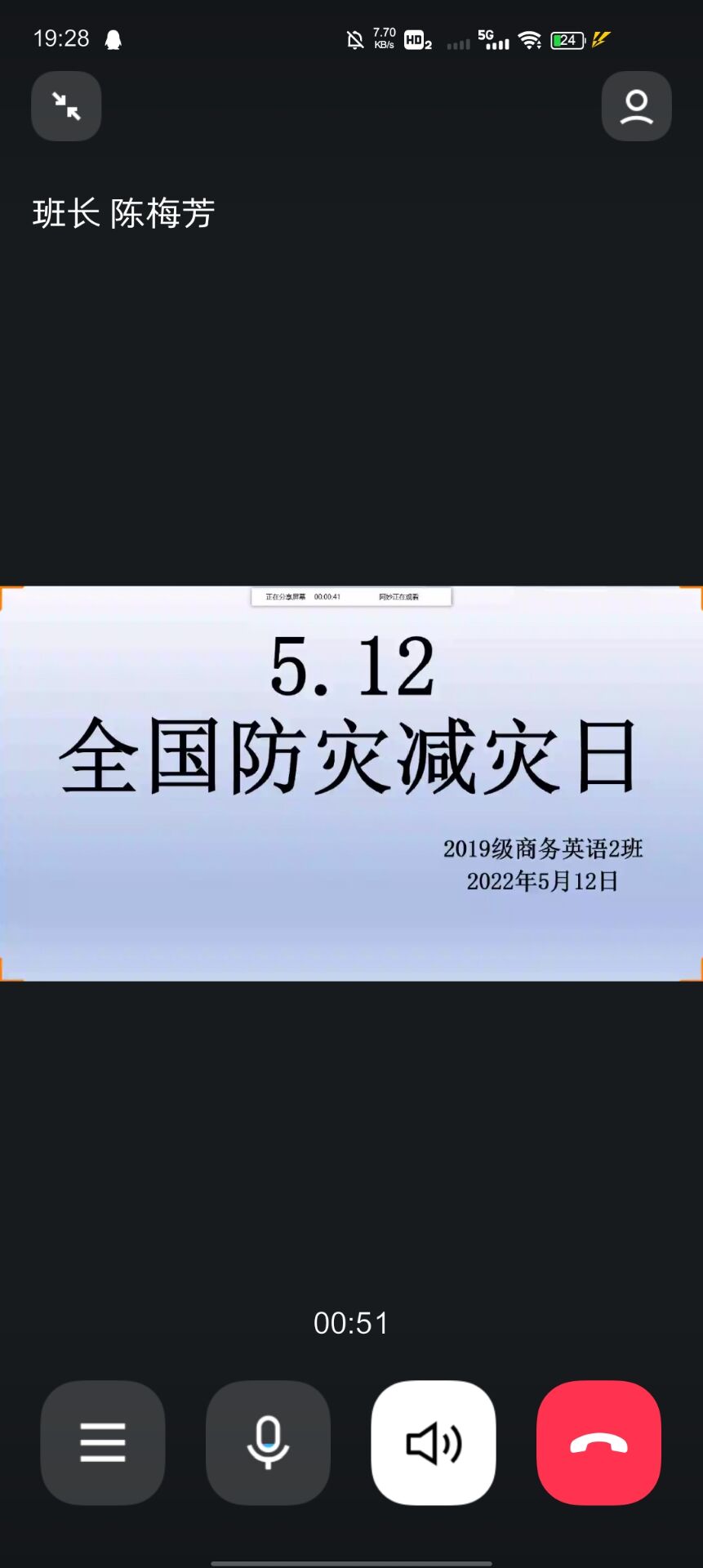 在主题班会上,各班利用PPT展示、班群讨论、小组交流等多种形式开展,主要通过学习自然灾害的相关知识和如何应对自然灾害,引导同学们在自然灾害发生时如何正确面对、科学应对,提高了同学们的防灾减灾、自救互救的意识与能力。我国是世界上主要的“气候脆弱区”之一,自然灾害频发、分布广、损失大,是世界上自然灾害最为严重的国家之一。我们在防灾减灾中应该坚持“预防为主”的基本原则,把灾害的监测预报预警放到十分突出的位置,并高度重视和做好面向全社会,包括社会弱势群体的预警信息发布。 最重要的是全面普及防灾减灾安全教育,强化全国人民的防灾减灾意识,切实保障人民群众的生命财产安全。