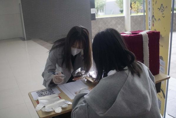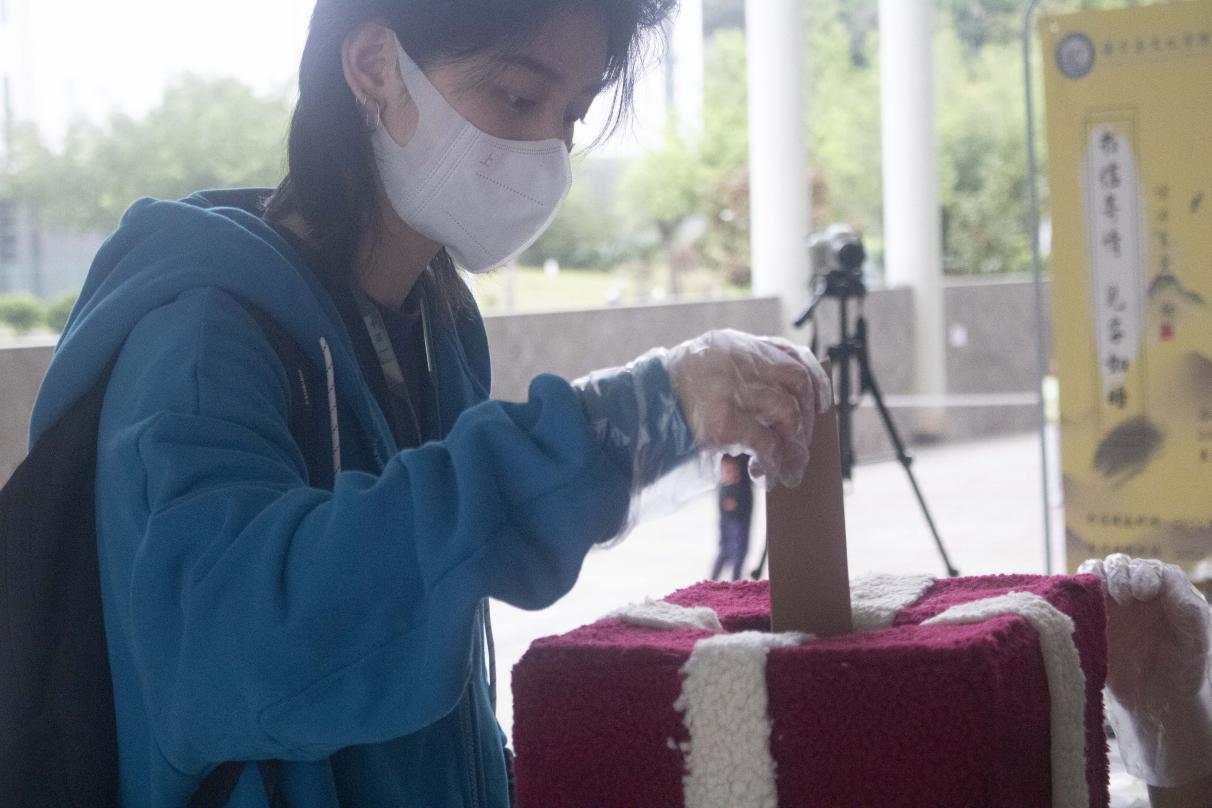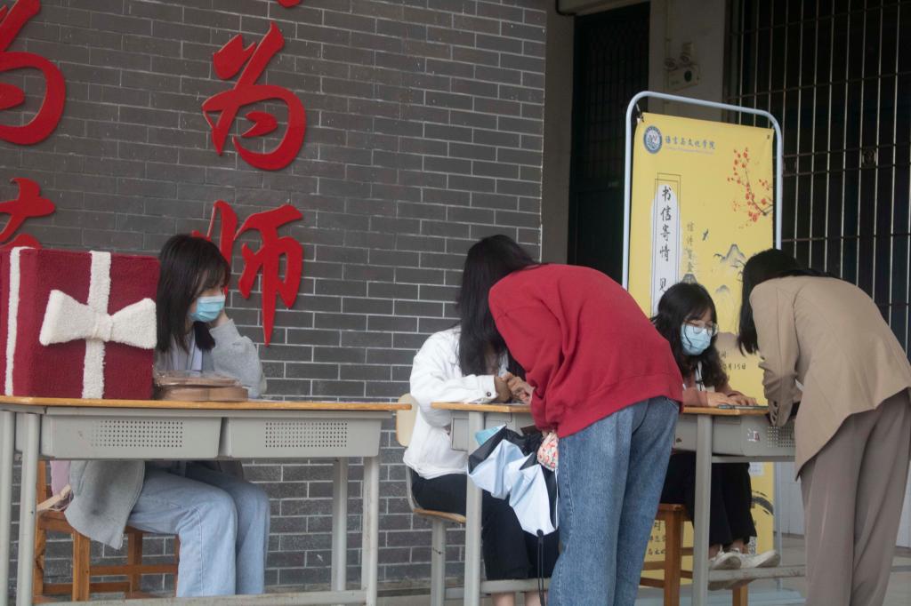现场,同学们听从工作人员引导,自觉佩戴口罩和一次性手套,分批次错峰进行书信的领取和投递。