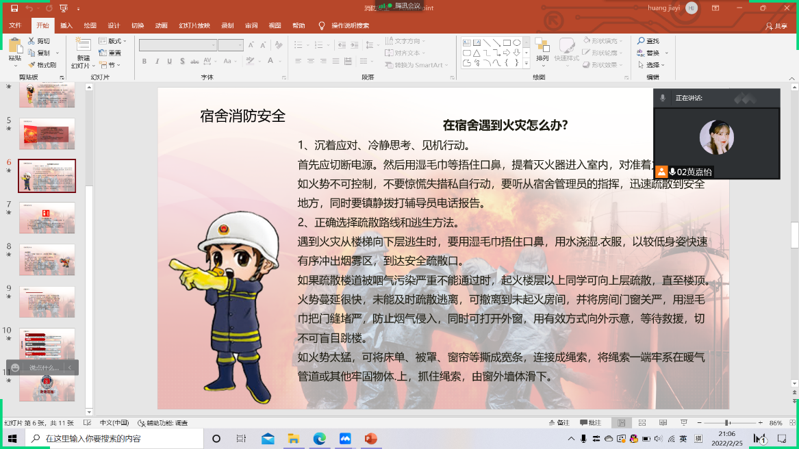 2022年2月24日到3月4日,语言与文化学院辅导员组织全体员工开展“消防安全”主题班会活动,对员工进行消防安全教育,学习消防安全知识,组织同学们观看消防警示片、消防安全教育片,引导员工树立消防安全观念,形成良好的消防安全意识。