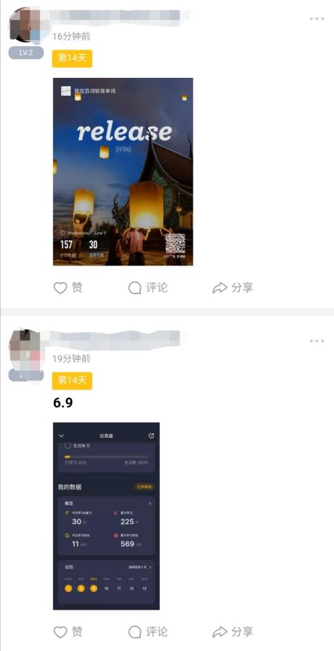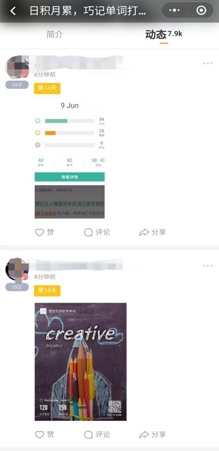 本次单词打卡活动要求参与者在指定的单词APP上,完成每日不少于三十个新单词的记忆任务并截图上传到微信“小打卡”小程序上,坚持14天便可获得相应奖励。