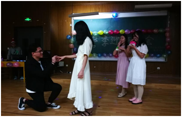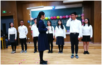 抽奖过后便是由英沙口语部带来的《杯子舞》,部员们配合得默契十足,一起舞动双手,合唱一曲,给大家呈现的不仅是一场精彩的表演,更是体现了部员们的团结一致!