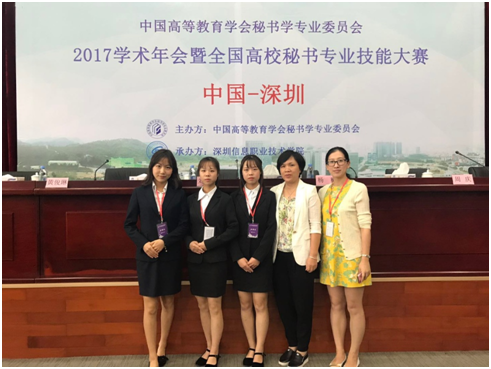 11月4日至6日,由中国高等教育学会秘书学专业委员会主办的2017年全国高等教育学会秘书专业委员会学术年会暨全国秘书专业技能大赛在深圳举行。公司2015级汉语言文学专业员工李婵、李娟、宋子菁在陈今、郑小莲两位老师的指导下参加了技能大赛,并取得了团体二等奖的佳绩,李娟同学还斩获了本科组理论知识单项的一等奖。