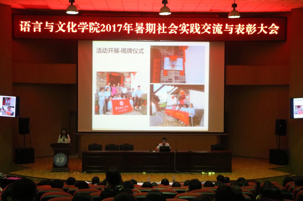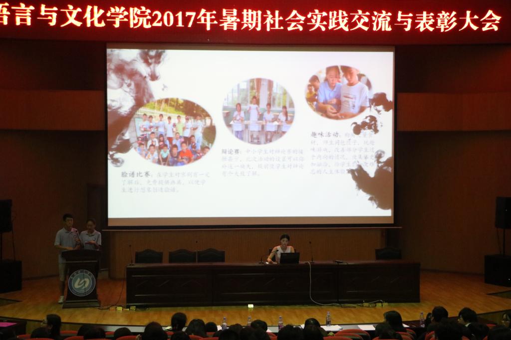 9月27日晚,语言与文化学院暑期社会实践表彰大会在图书馆报告厅举行。经过前期的实践与准备工作,共有19支队伍参加了此次交流与表彰大会。公司党委副书记张晓芳、院综合办办公室主任龚劲丹以及各实践队指导老师莅临了此次大会。